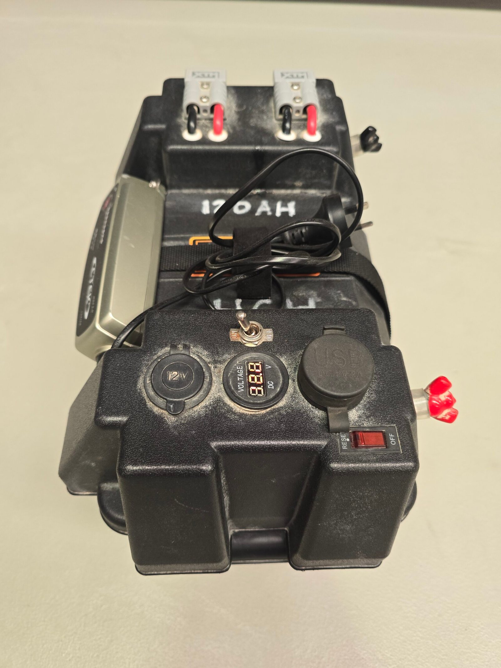 Additional power for your getaway. Power a fridge, light, or just charge your phone! Comes with a 240volt charger for mains power charging, or couple with one of our solar panels if you are off grid!