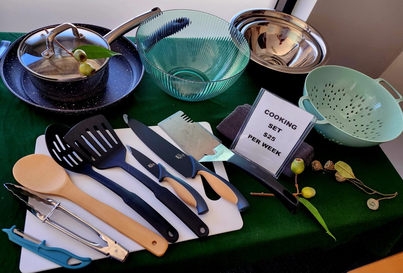 Don’t want to take your own cooking equipment camping? Use Ours! Hire a Cooking set from us, for all your cooking needs.